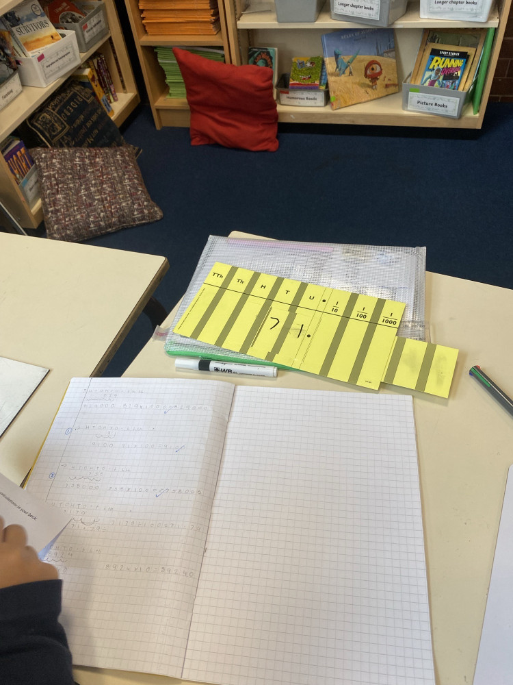 Year 6 are working on dividing and multiplying by 10,100,1000. If needed, they can use manipulatives to help them.